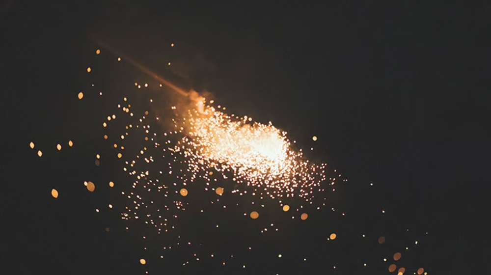 赤褐色の光を花のように咲かせ、静かに散るその姿は