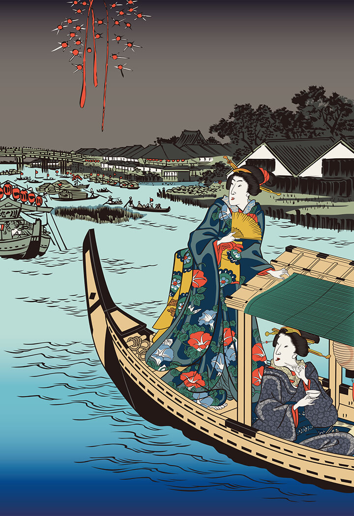 花火が散る様子をじっと見たり、水面に映る花火を見たり、音だけを聴いたり…当時は、そんな楽しみ方をしていたのだろうと想像できます。