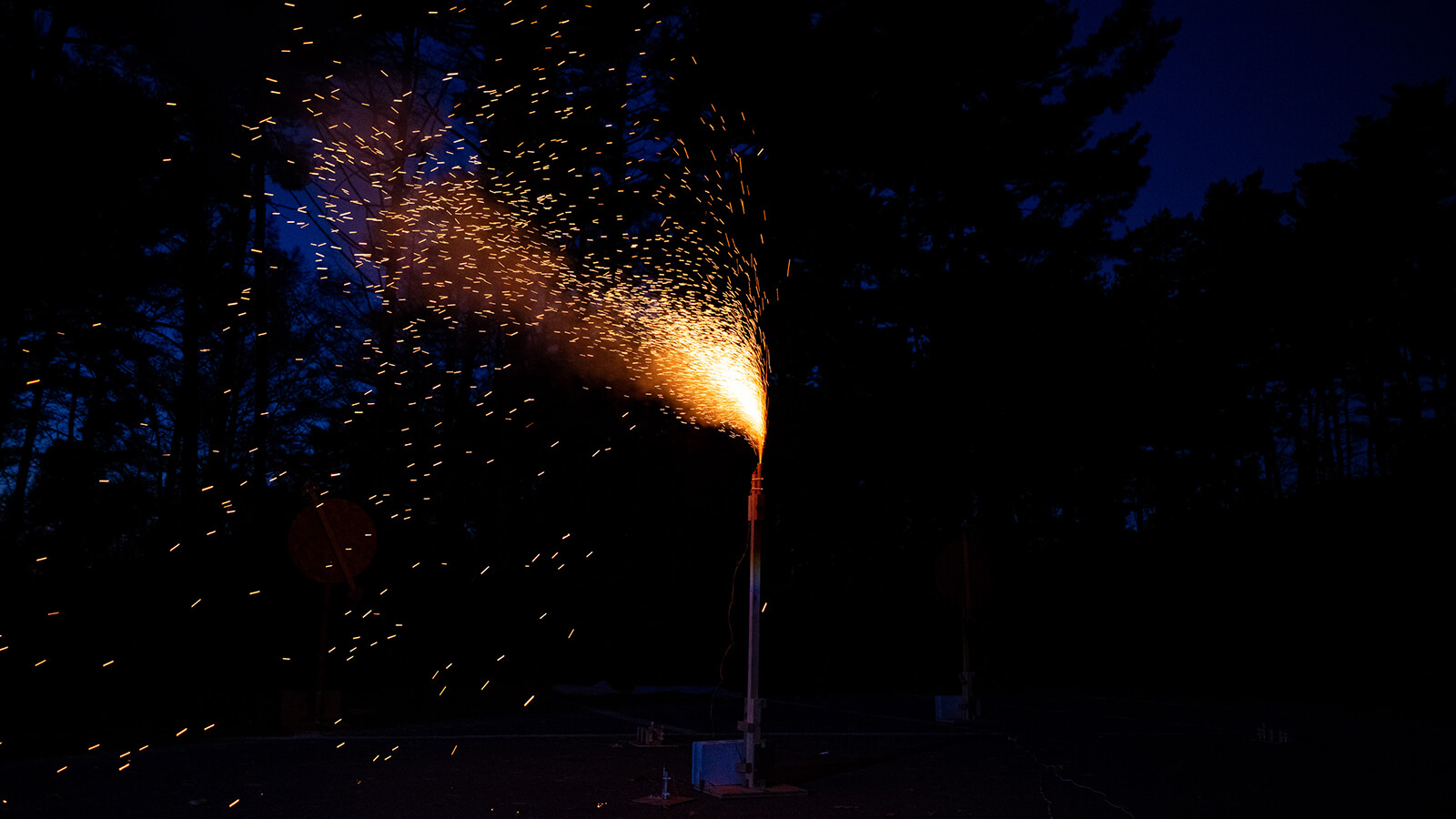 赤褐色の光を花のように咲かせ、静かに散るその姿は